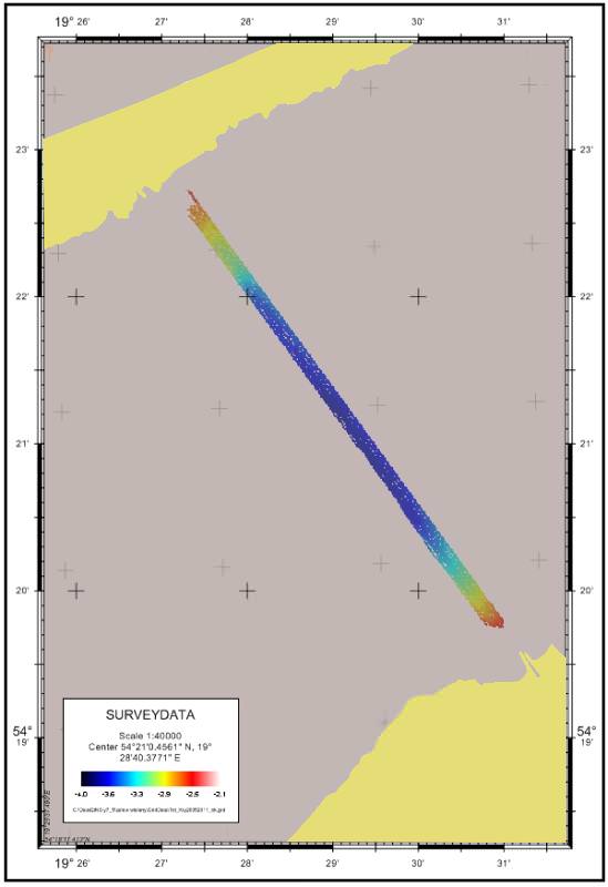 Teren badań UM na odcinku Tolkmicko – Krynica Morska. Źródło: Urząd Morski.